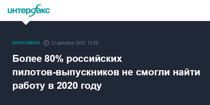Москва. 22 декабря. INTERFAX.RU - В России в 2020 году из-за спада авиаперевозок не смогли найти работу больше 80% пилотов - выпускников учебных заведений гражданской авиации. Об этом в Общественном совете при Росавиации сообщила начальник управления государственной службы и кадров агентства Наталья Крупина.
