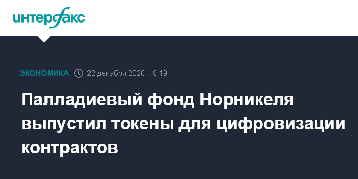 Палладиевый фонд Норникеля выпустил токены для цифровизации контрактов