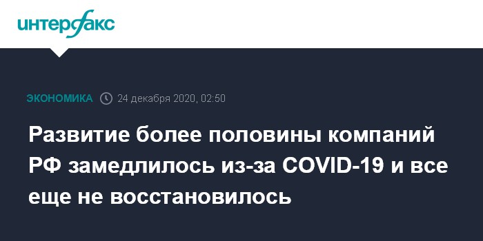 Развитие более половины компаний РФ замедлилось из-за COVID-19 и все еще не восстановилось