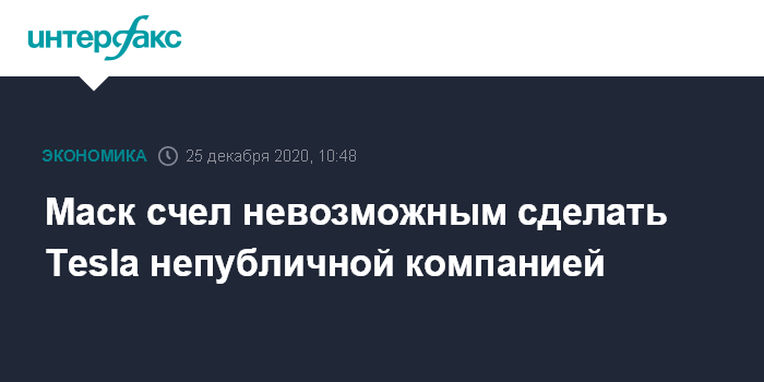 "Обязанности Tesla в качестве публичной (торгующейся на бирже - ИФ) компании являются значительно более существенным фактором, однако сейчас ее невозможно сделать частной (акции которой не продаются на бирже - ИФ)", - написал Маск в твиттере в ответ на сообщение о том, что он должен оптимизировать свое время в таких сферах, как инновации.