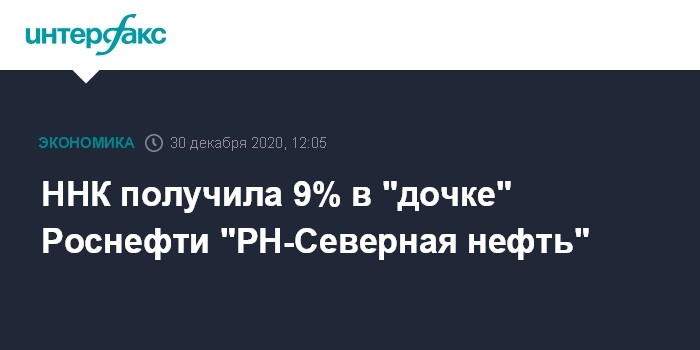 Москва. 30 декабря. INTERFAX.RU - ООО "ННК-Ойл" Эдуарда Худайнатова стало владельцем 9% ООО "РН-Северная нефть". По данным ЕГРЮЛ, с 29 декабря доля ООО "РН-Разведка и добыча" (структура "Роснефти" в "РН-Северная нефть" снизилась со 100% до 91%.