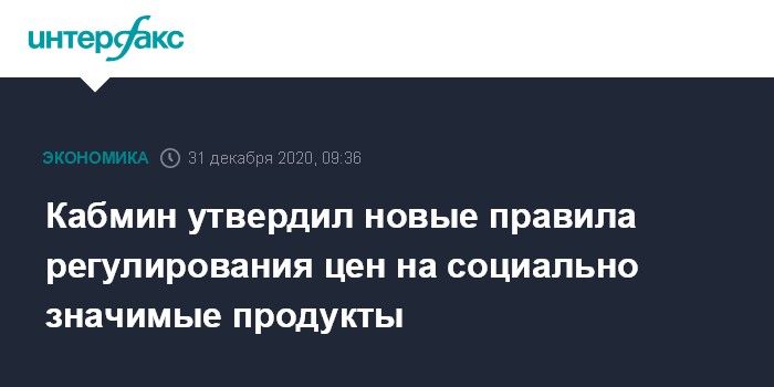 Москва. 31 декабря. INTERFAX.RU - Правительство РФ утвердило изменения правил госрегулирования цен на отдельные социально значимые продовольственные товары первой необходимости/