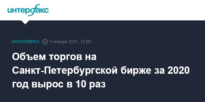 Объем торгов на Санкт-Петербургской бирже за 2020 год вырос в 10 раз