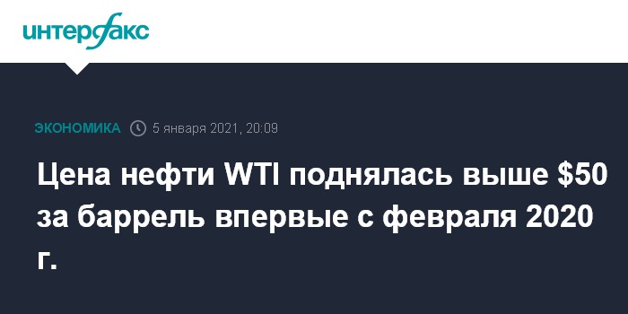 Цена нефти WTI поднялась выше $50 за баррель впервые с февраля 2020 г.