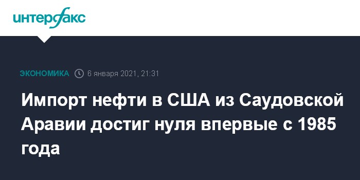 Согласно приведённым еженедельным данным, которые имеются с 2010 года, за всё это время импорт нефти из королевства ни разу не достигал нуля. Исходя из ежемесячных данных, последний раз США не импортировали ни одной бочки нефти из Саудовской Аравии в сентябре 1985 года.