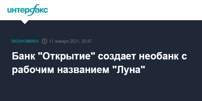 Банк "Открытие" создает необанк с рабочим названием "Луна"