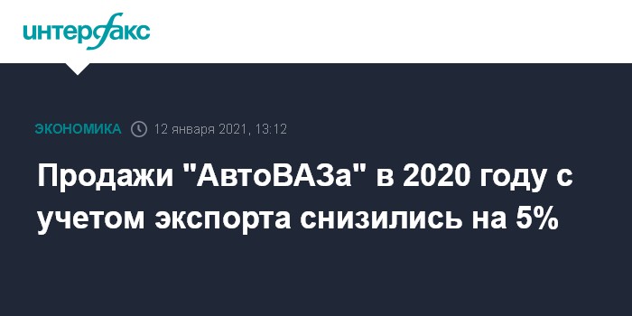 Москва. 12 января. INTERFAX.RU - Продажи автомобилей Lada в РФ и за ее пределами в 2020 году снизились на 5%, до 393 806 машин, следует из сообщения французского автоконцерна Renault.