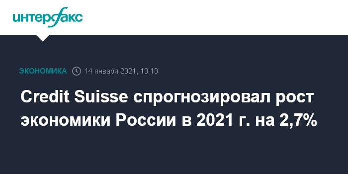 Credit Suisse спрогнозировал рост экономики России в 2021 г. на 2,7%