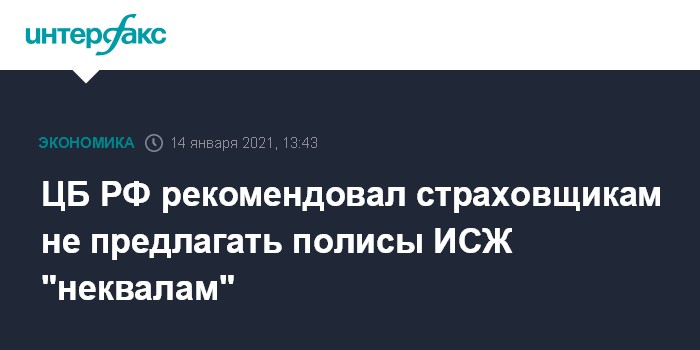 ЦБ РФ рекомендовал страховщикам не предлагать полисы ИСЖ "неквалам"