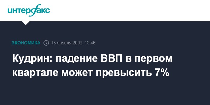 Москва. 15 апреля. INTERFAX.RU - Падение ВВП РФ в первом квартале 2009 г. может составить более 7%, заявил журналистам вице-премьер, министр финансов РФ Алексей Кудрин.