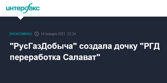 Москва. 14 января. INTERFAX.RU - Партнер "Газпрома" по нескольким крупным проектам в добыче и переработке, АО "РусГазДобыча", создал новую дочернюю компанию – ООО "РГД переработка Салават", свидетельствуют данные системы "СПАРК-Интерфакс".