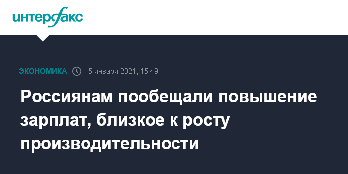 Россиянам пообещали повышение зарплат, близкое к росту производительности