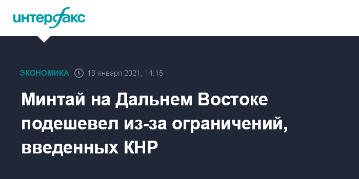 Как сообщалось, в декабре 2020 года Китай в рамках карантинных мер против COVID-19 закрыл порты, через которые в страну ввозилась, в том числе, и рыба из России. Это осложнило обстановку в рыбной отрасли Дальнего Востока, поскольку до 70% рыбы, добываемой в ходе охотоморской путины, экспортировалось на китайский рынок.
