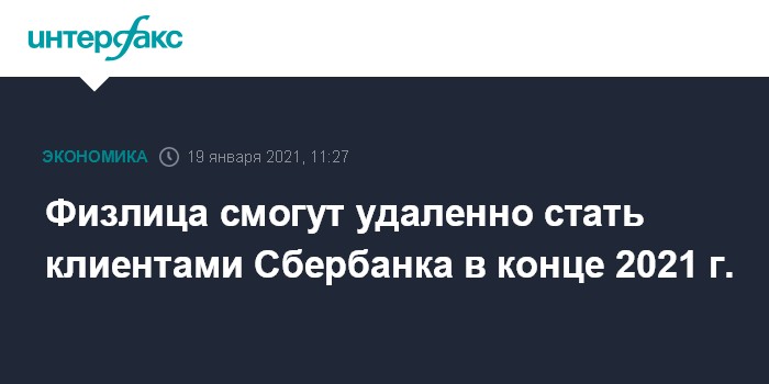 Физлица смогут удаленно стать клиентами Сбербанка в конце 2021 г.