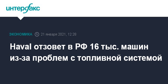 Haval отзовет в РФ 16 тыс. машин из-за проблем с топливной системой