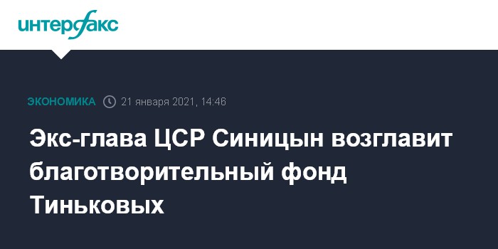 Москва. 21 января. INTERFAX.RU - Фонд семьи Тиньковых по решению проблем рака крови и популяризации донорства возглавит бывший президент "Центра стратегических разработок" (ЦСР) Александр Синицын, написал бизнесмен Олег Тиньков в инстаграме.