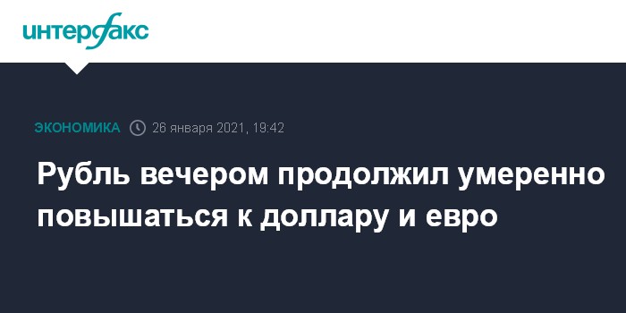 Как отмечают эксперты "Интерфакс-ЦЭА", рубль продолжает умеренно повышаться к доллару и евро на вечерних торгах. Поддержку нацвалюте оказывает некоторое улучшение ситуации на внешних рынках и увеличение готовности инвесторов к покупке рисковых активов. Они продолжают следить за эпидемиологической ситуацией в различных странах, ходом вакцинации в США, а также ожидают заседания Федеральной резервной системы (ФРС) США, итоги которого будут подведены в среду, 27 января.