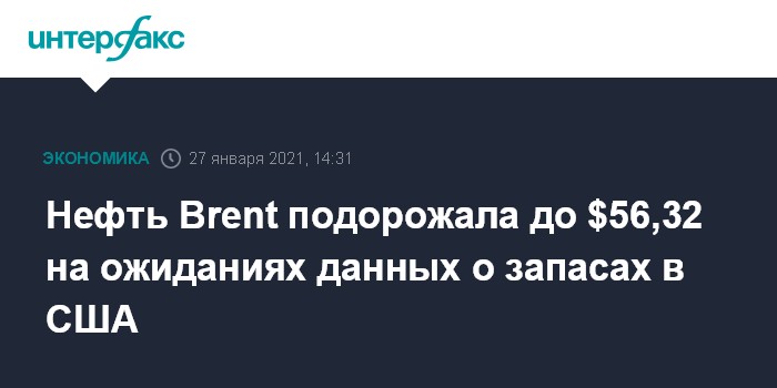 Нефть Brent подорожала до $56,32 на ожиданиях данных о запасах в США