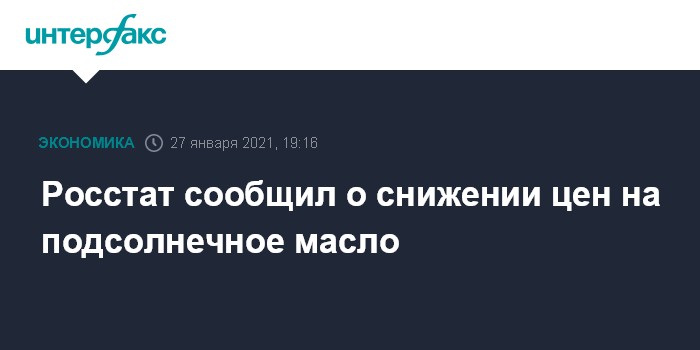 Москва. 27 января. INTERFAX.RU - Потребительские цены на подсолнечное масло в РФ на минувшей неделе все-таки поддались ограничительным мерам и вслед за ценами на сахар начали снижаться.