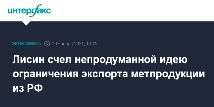 По итогам совещания в Минпромторге с руководителями крупнейших металлургических компаний, которое состоялось 27 января, Лисин подготовит обращение премьер-министру РФ Михаилу Мишустину с предложением "остановить обсуждение непродуманных инициатив по введению ценового контроля с помощью тарифных ограничений экспорта металлопродукции и сырья", так как они не приведут к коррекции цен на внутреннем рынке, говорится в сообщении "Русской стали".
