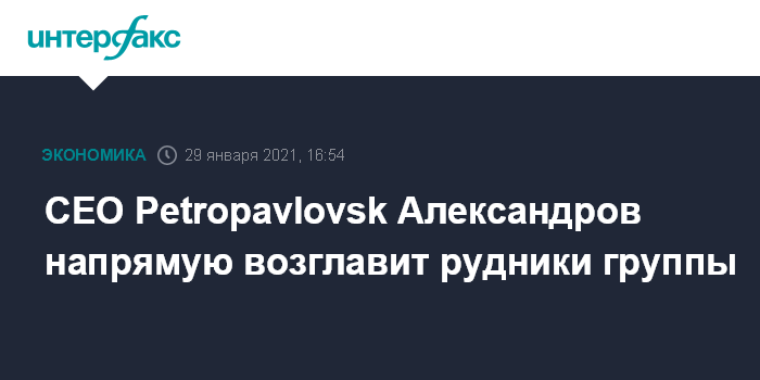 CEO Petropavlovsk Александров напрямую возглавит рудники группы