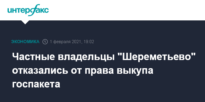 Частные владельцы "Шереметьево" отказались от права выкупа госпакета