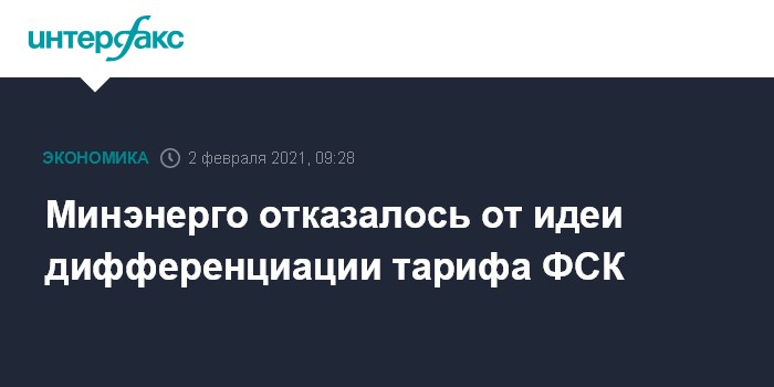 Минэнерго отказалось от идеи дифференциации тарифа ФСК