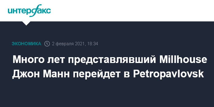 Много лет представлявший Millhouse Джон Манн перейдет в Petropavlovsk