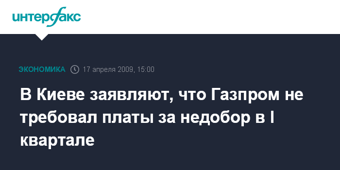 В Киеве заявляют, что Газпром не требовал платы за недобор в I квартале