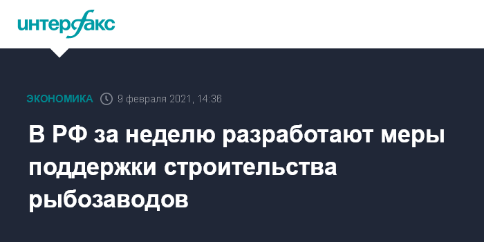 Москва. 9 февраля. INTERFAX.RU - Правительство РФ в течение недели разработает комплекс мер поддержки для строительства новых рыбоперерабатывающих заводов на Дальнем Востоке с использованием программы "квоты в обмен на инвестиции", сообщил вице-премьер - полпред президента РФ в ДФО Юрий Трутнев журналистам после совещания во Владивостоке во вторник.