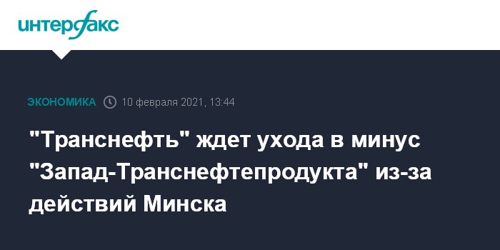 "Транснефть" ждет ухода в минус "Запад-Транснефтепродукта" из-за действий Минска