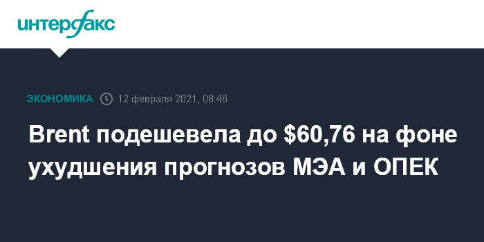 Между тем МЭА снизило прогноз мирового спроса на нефть в 2021 году на 100 тыс. б/с, до 5,4 млн б/с.