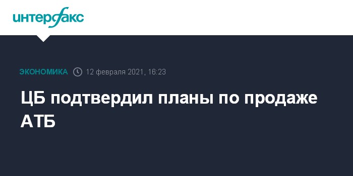 Банк России из-за пандемии перенес продажу АТБ на 2021-2022 годы. "Еще раз подтвержу нашу линию, нашу политику на выход из капитала санируемых банков. Мы готовим к продаже банк АТБ, кстати, там инвесторы проявляют интерес", - заявила председатель ЦБ Эльвира Набиуллина в ходе пресс-конференции в пятницу.