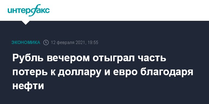 Москва. 12 февраля. INTERFAX.RU - Доллар и евро несколько снизили темпы роста на "Московской бирже" в пятницу вечером, рубль отыграл часть потерь к бивалютной корзине благодаря развернувшейся вверх нефти.