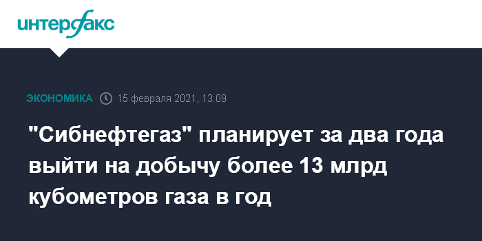 Москва. 15 февраля. INTERFAX.RU - Крупный газодобывающий актив "Роснефти" "Сибнефтегаз" планирует в 2022 году выйти на добычу более 13 млрд кубометров газа в год, говорится в презентации нефтяной компании.