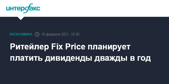 Москва. 15 февраля. INTERFAX.RU - Ритейлер Fix Price, который в понедельник объявил о намерении провести IPO на Лондонской фондовой бирже, планирует выплачивать дивиденды дважды в год.