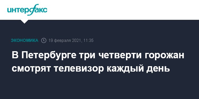 Москва. 19 февраля. INTERFAX.RU - В Петербурге ежедневно смотрят телевизор 74% горожан, причем, 10% готовы смотреть его с утра, как только проснутся, показало исследование ученых Северо-Западного института управления РАНХиГС. Они в январе опросили больше 1000 человек.