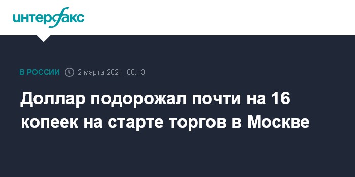 Мосбиржа поворачивается на Восток, расширяя торги на валютном и срочном рынке. Обзор.Читать подробнееПервые сделки по доллару США прошли в диапазоне 74,28-74,35 рубля за доллар. По итогам второй минуты торгов доллар подорожал на 15,75 копейки к уровню закрытия понедельника и торговался у 74,3225 рубля. Евро подорожал на 7,5 копейки, до 89,39 рубля. Бивалютная корзина ($0,55 и 0,45 евро) подорожала на 12 копеек к уровню закрытия понедельника, до 81,1 рубля.