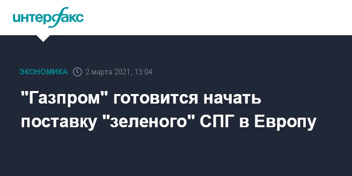 Москва. 2 марта. INTERFAX.RU - "Газпром" готовится начать поставки потребителям углеродно-нейтрального - "зеленого" СПГ, сообщил начальник управления экспорта СПГ "Газпром экспорта" Павел Седов.