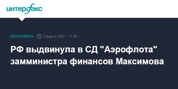 Москва. 3 марта. INTERFAX.RU - Правительство РФ выдвинуло в совет директоров (СД) "Аэрофлота" замминистра финансов Тимура Максимова.