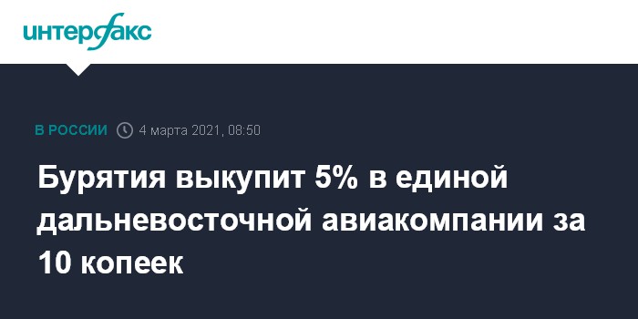 Бурятия выкупит 5% в единой дальневосточной авиакомпании за 10 копеек