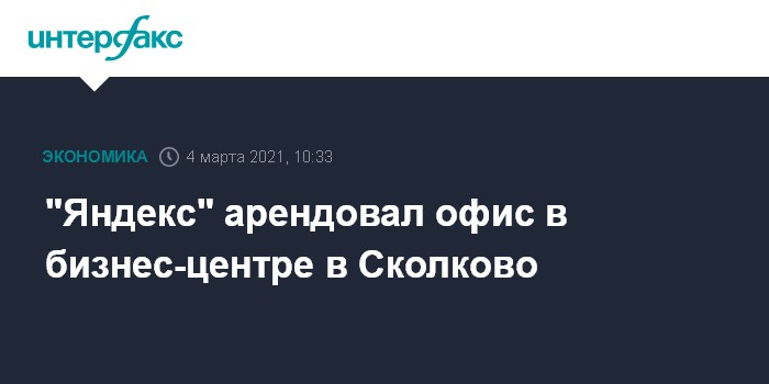 "Яндекс" арендовал офис в бизнес-центре в Сколково