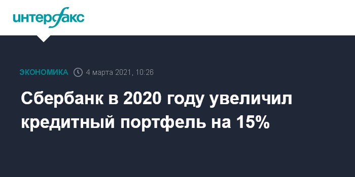 Сбербанк в 2020 году увеличил кредитный портфель на 15%
