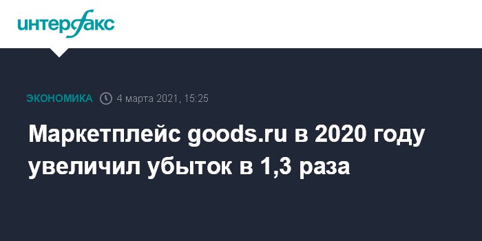 Москва. 4 марта. INTERFAX.RU - Чистый убыток маркетплейса goods.ru по итогам 2020 года вырос в 1,3 раза, следует из отчетности основного владельца площадки - "М.Видео - Эльдорадо".