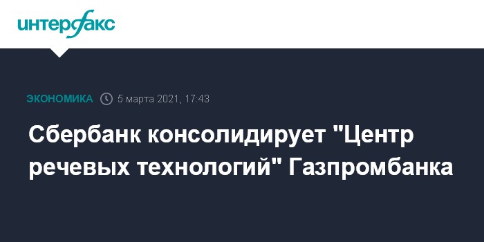 Сбербанк консолидирует "Центр речевых технологий" Газпромбанка