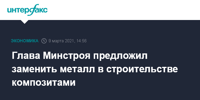 Москва. 9 марта. INTERFAX.RU - В связи с подорожанием стройматериалов и, прежде всего, металла, глава Минстроя Ирек Файзуллин предложил заменить их в строительстве на композитные материалы.