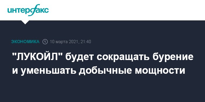 Москва. 10 марта. INTERFAX.RU - "ЛУКОЙЛ" планирует сокращать бурение, добычные мощности будут снижаться, сообщил первый вице-президент компании Азат Шамсуаров в ходе презентации по итогам года.