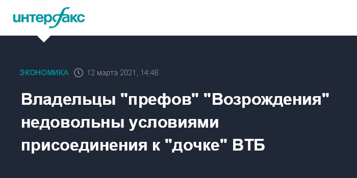 Владельцы "префов" "Возрождения" недовольны условиями присоединения к "дочке" ВТБ