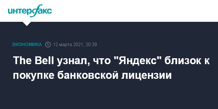 Москва. 12 марта. INTERFAX.RU - "Яндекс" после срыва многомиллиардной сделки по покупке TCS Group Олега Тинькова двигается в сторону развития финтех-направления гораздо более осторожными шагами: компания намерена приобрести банк, единственным значимым активом которого является банковская лицензия.