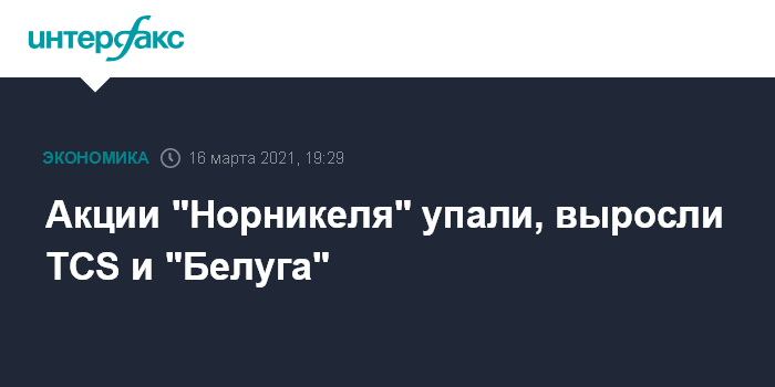 Акции "Норникеля" упали, выросли TCS и "Белуга"